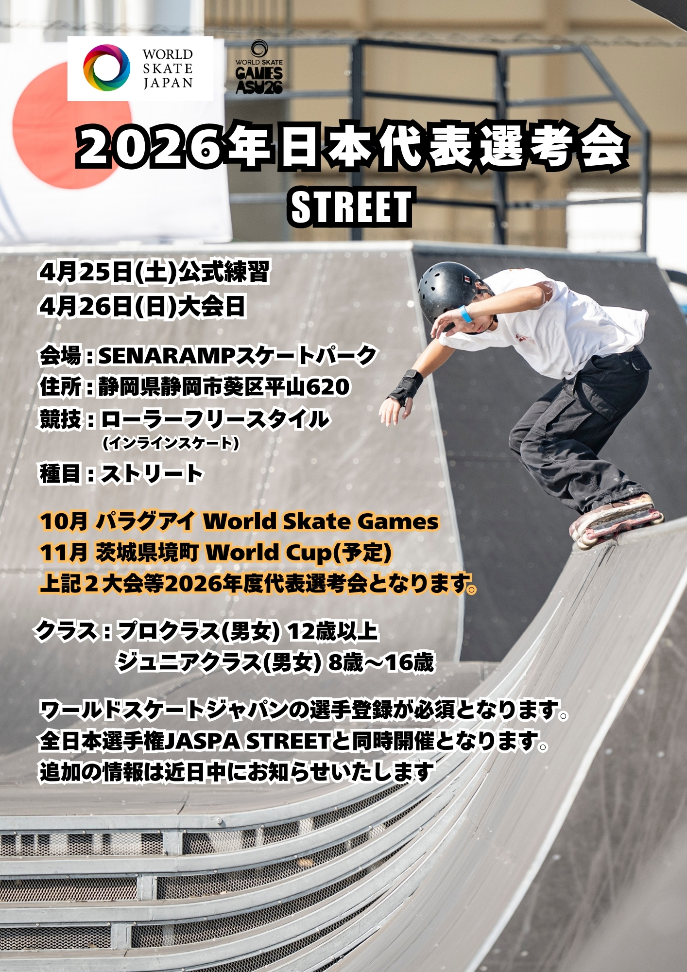 - ワールドスケートジャパンの選手登録(ローラーフリースタイル)をしていること。